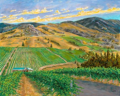 Sharon has called the Okanagan home since 1970 and continues to draw inspiration from the valley’s breathtaking beauty. The region's lakes, cliffs, vineyards, and orchards have provided her with endless material to paint. Working primarily with oils, she also explores acrylics, mixed media, and graphite. Sharon’s art has been featured in both juried and non-juried exhibitions across the Okanagan, with many pieces now part of private collections. She is an active member of the Federation of Canadian Artists and The Brushstrokes Art Group. Her work is currently showcased at The Aurora Matheson Gallery in downtown Penticton. Prints of this piece by Sharon are available in many sizes, email Ron at ragladish@gmail.com for more information.