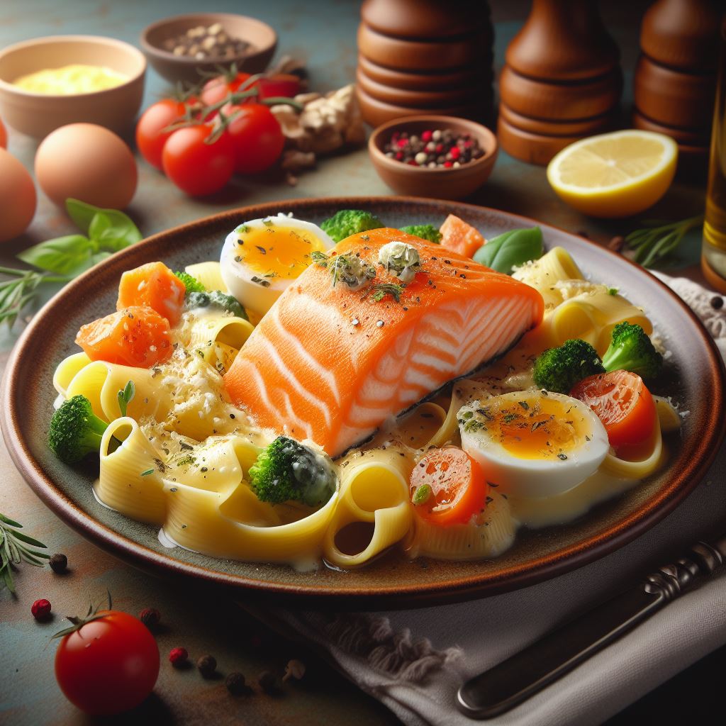16. Bake for 20-25 minutes until the salmon is done and the pasta rolls are lightly browned.